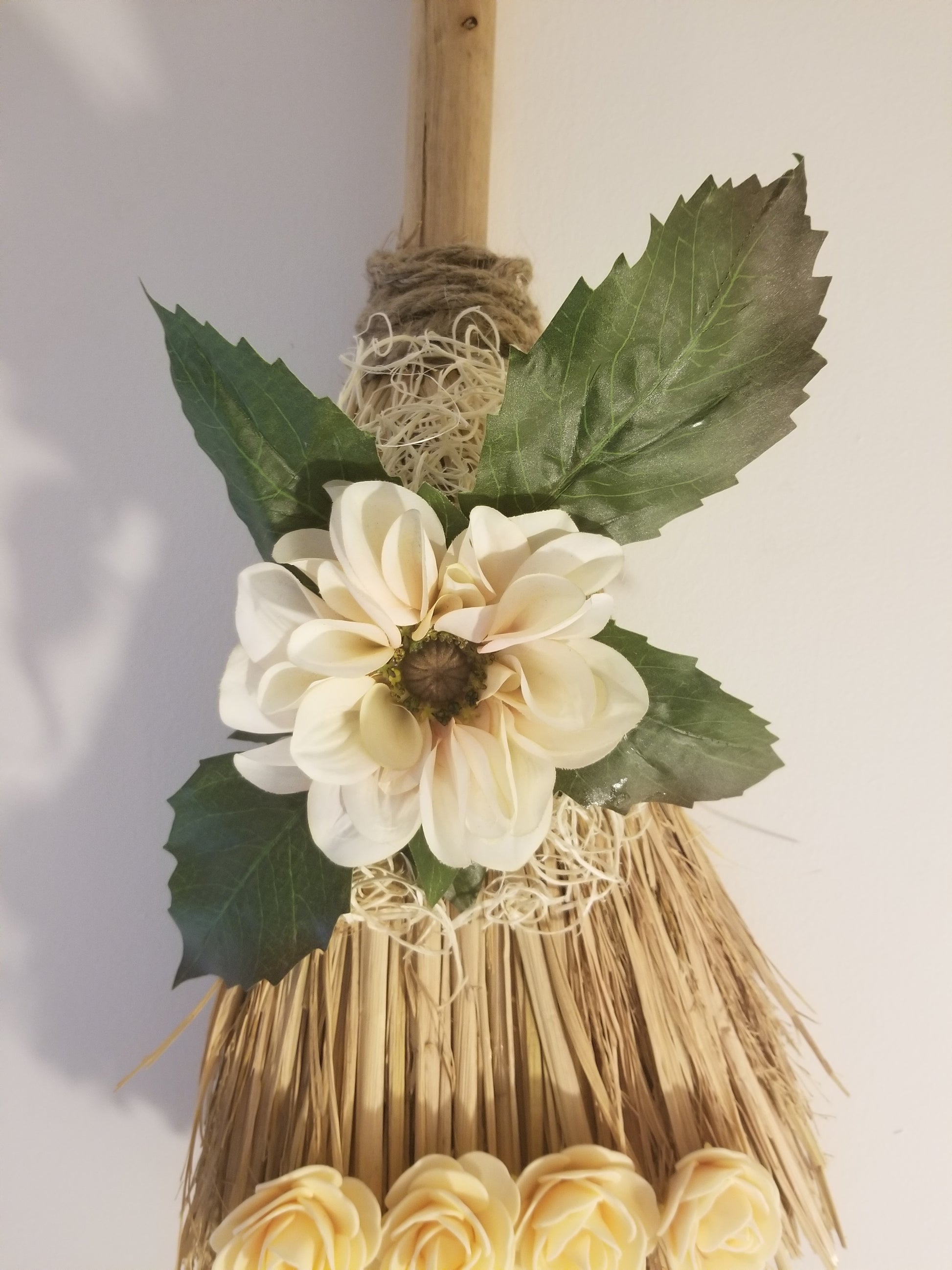 deco#balaienbois#fleurs#feuillage#roses#corde#copeauxbois