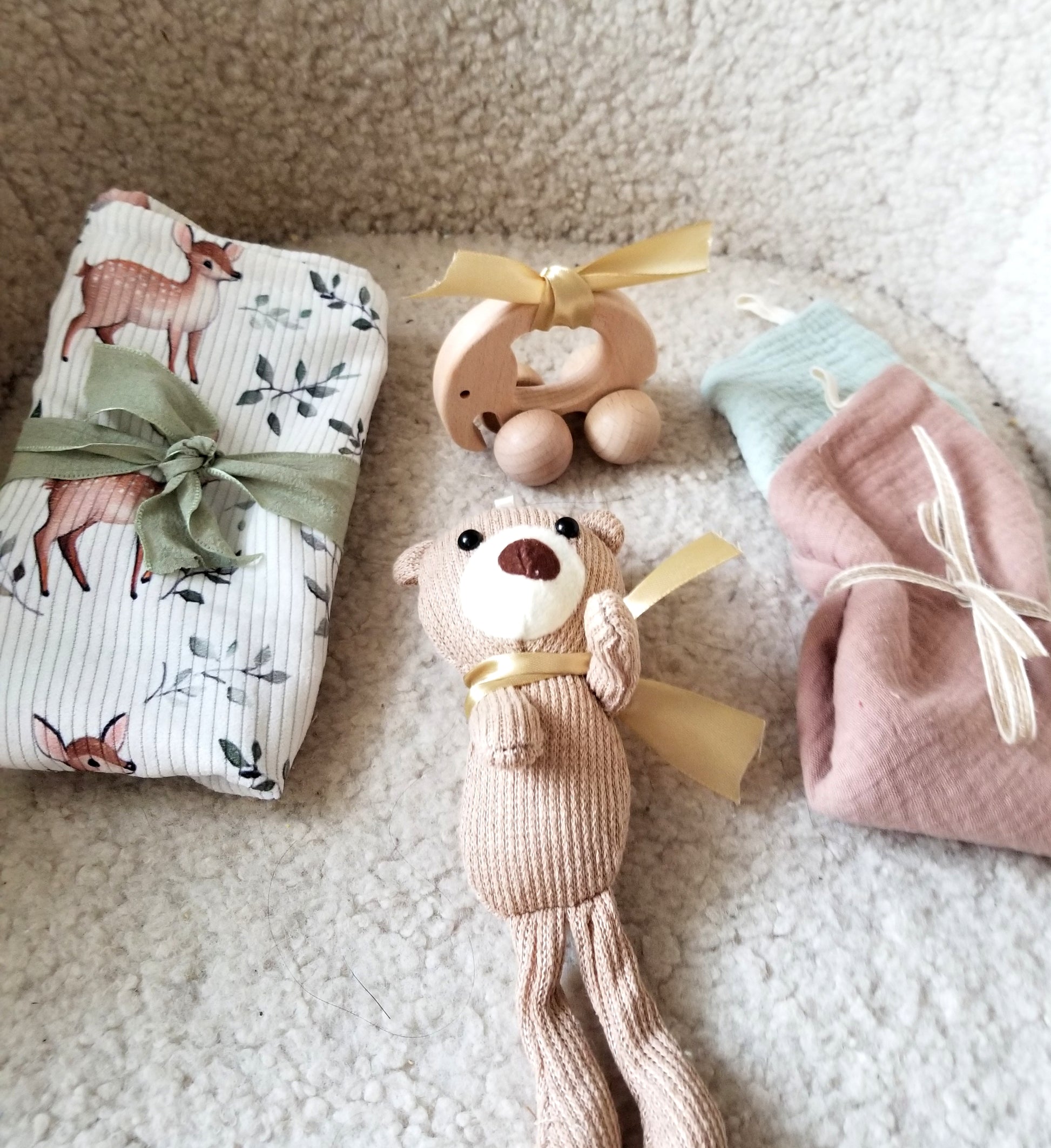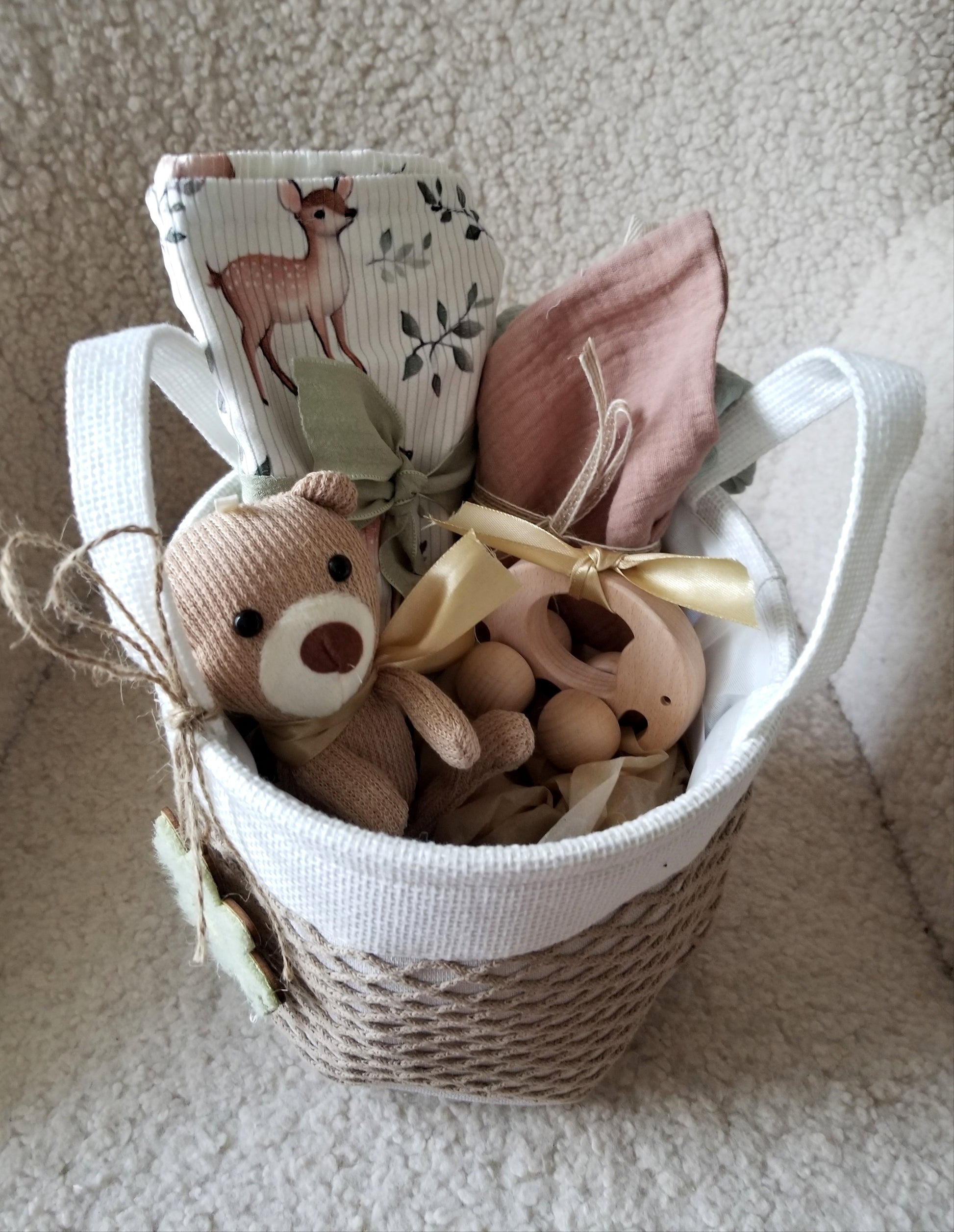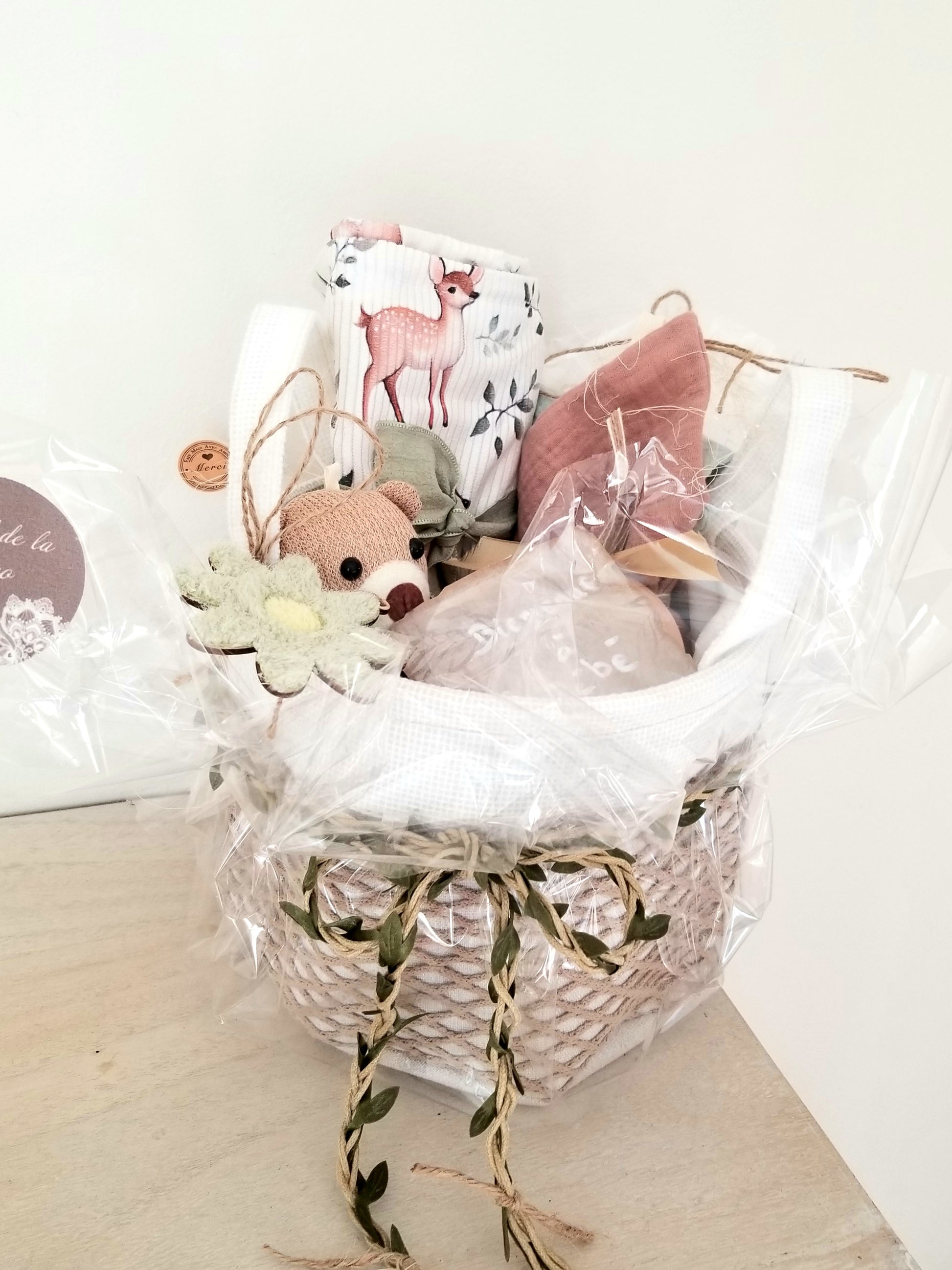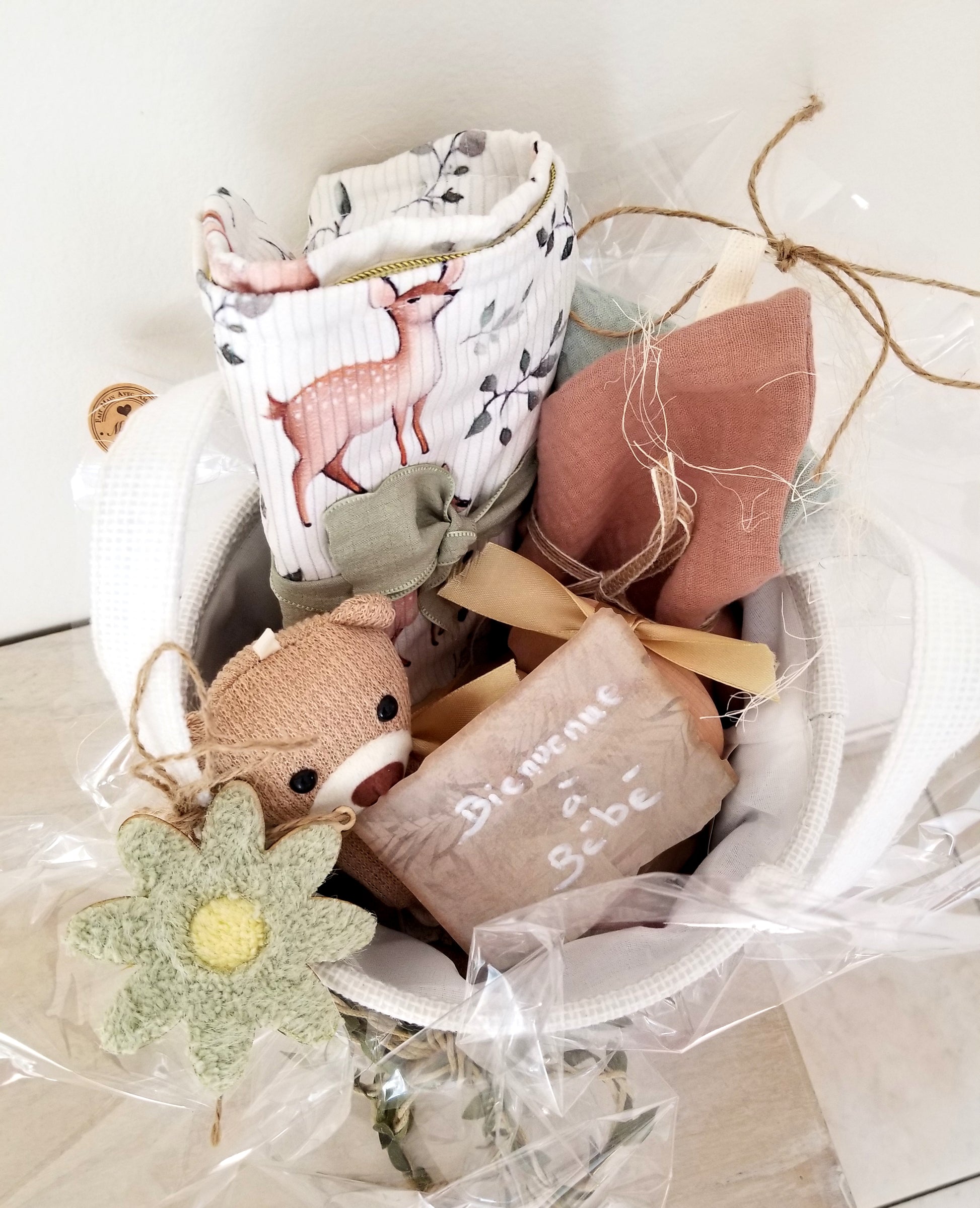 deco#corbeille#troussedetoilette#deuxbavoirs#elephantenbois#petitepeluche