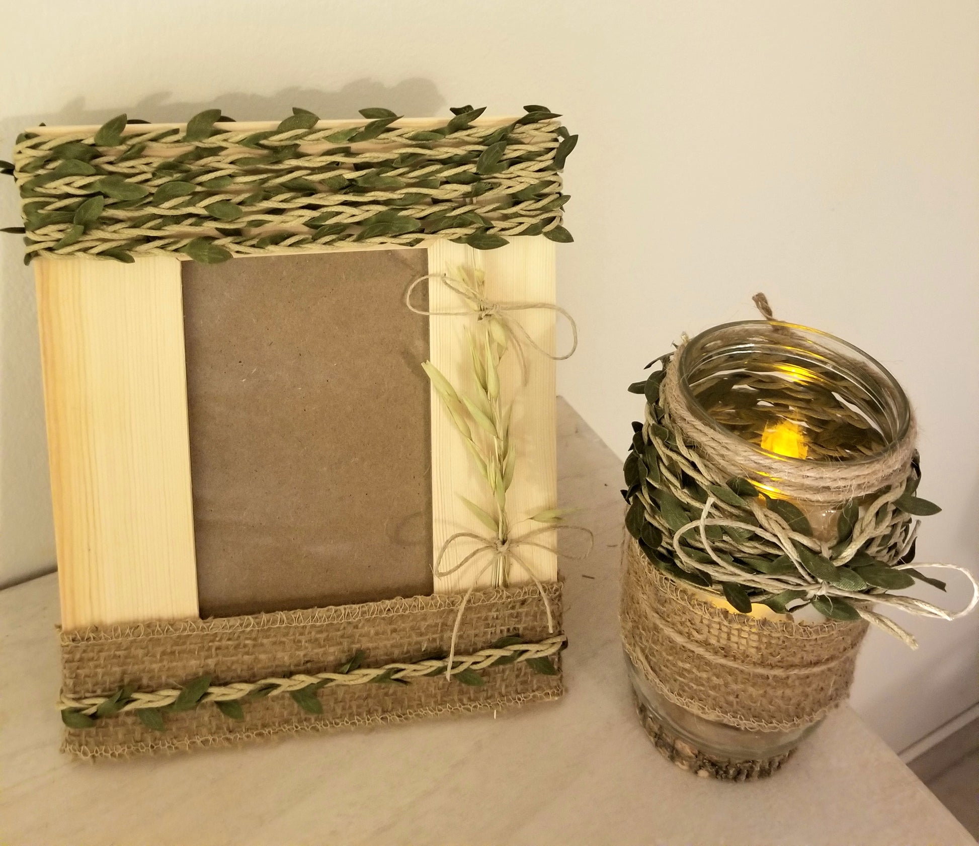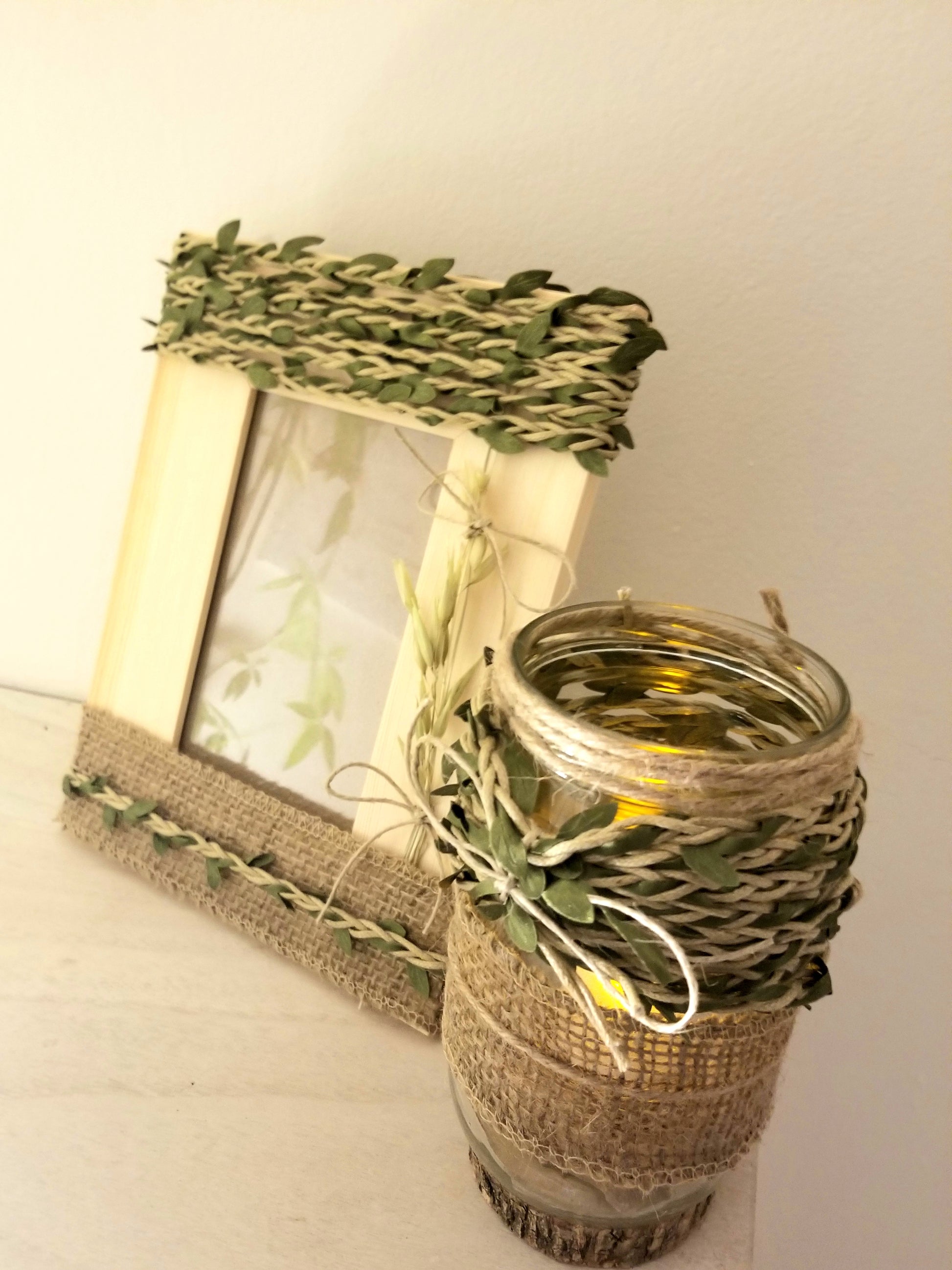 deco#cadre#potenverre#rubandetulle#cordeletteetfeuilletressee#cordelette#fleursechee