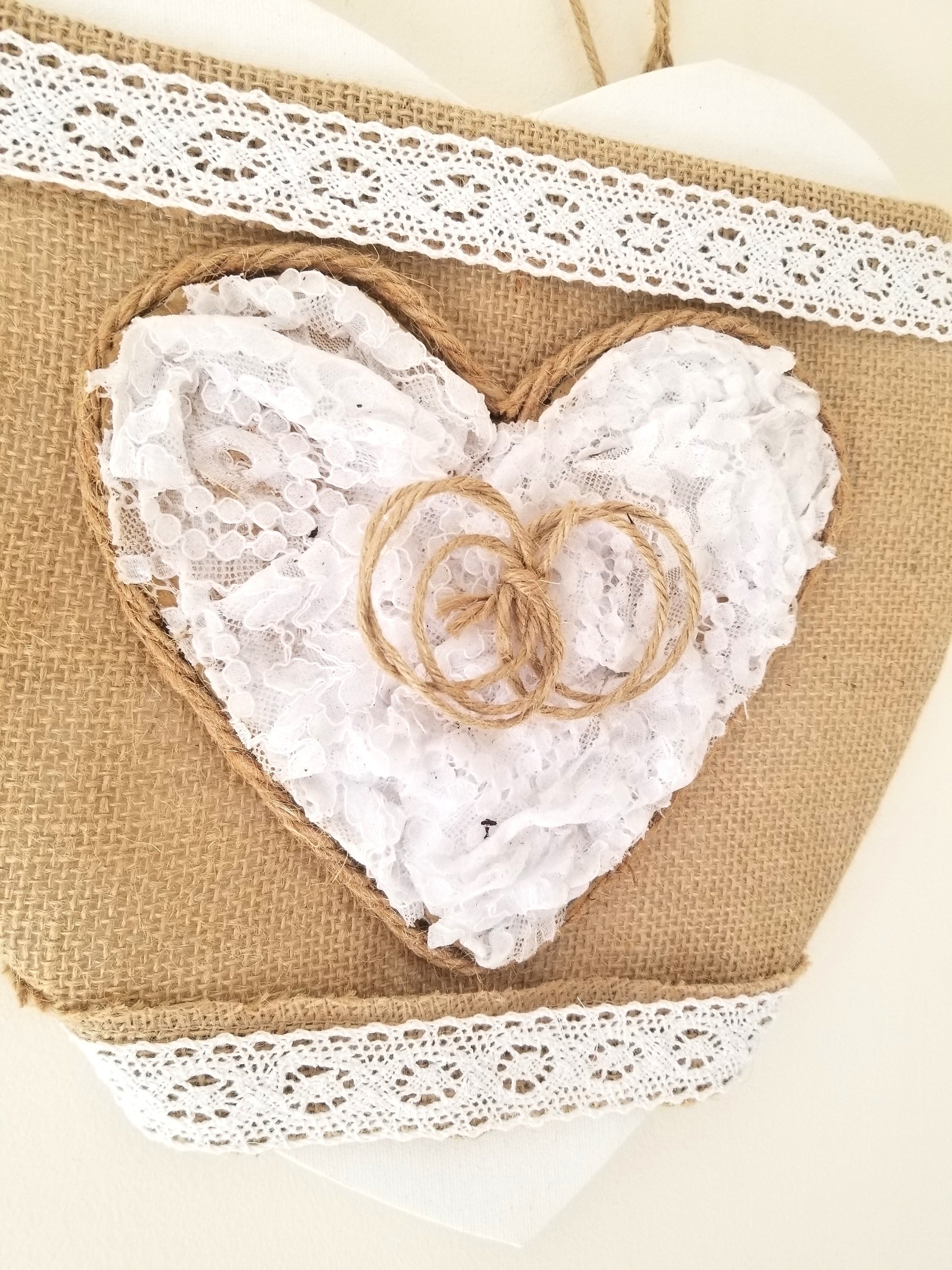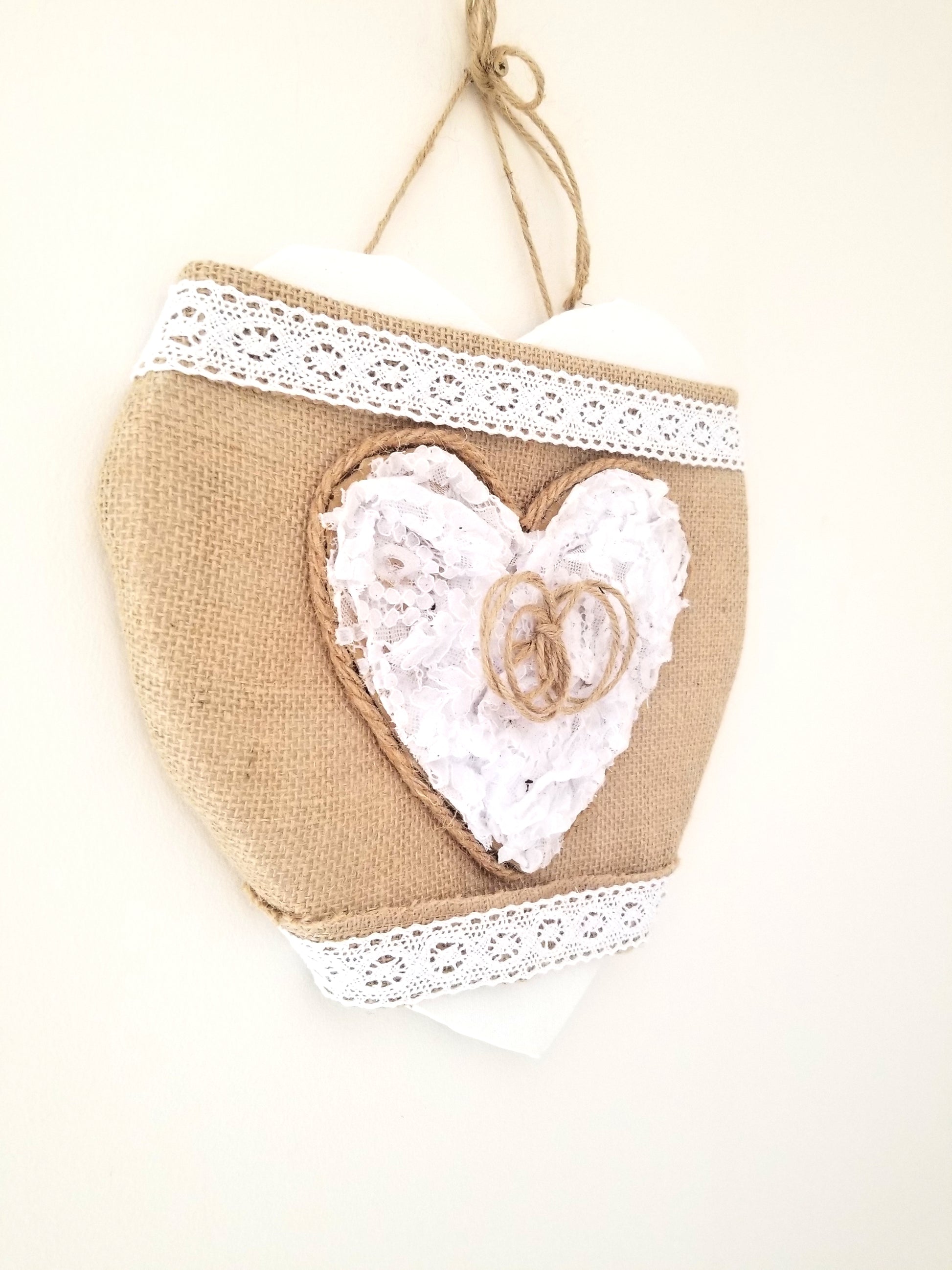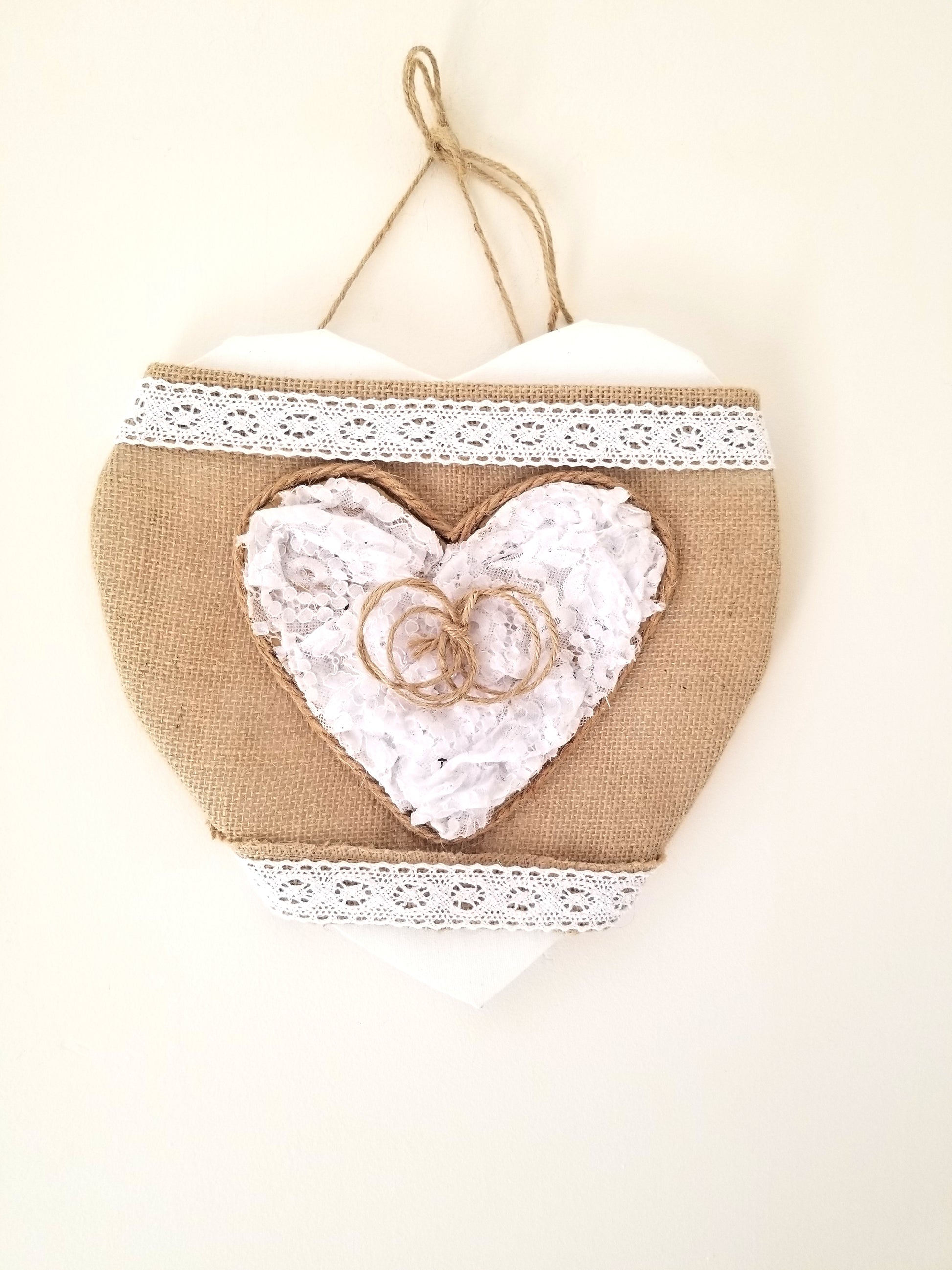 deco#cadrecoeur#corde#toiledejute#tissuresilledentelle#cordelette#dentelle