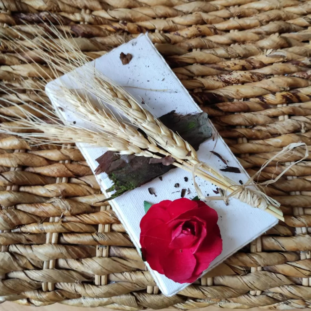 Cadre Haut, Ecorce bois ,Rose en Papier, Epis de Blé,