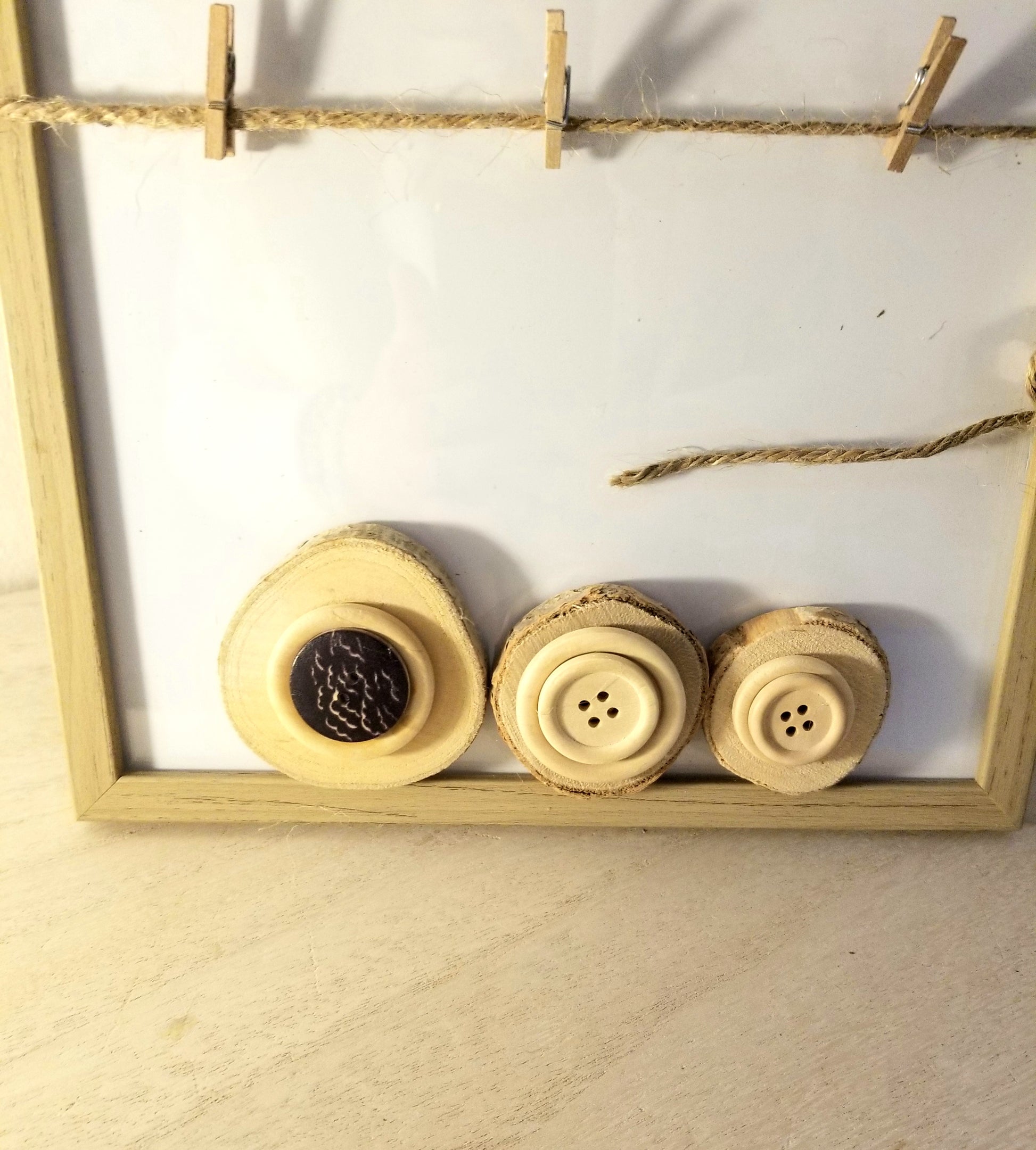 deco#cadresphotos#rondinsbois#cordelette#pincesalinge#boutonsenbois#batonnetbois