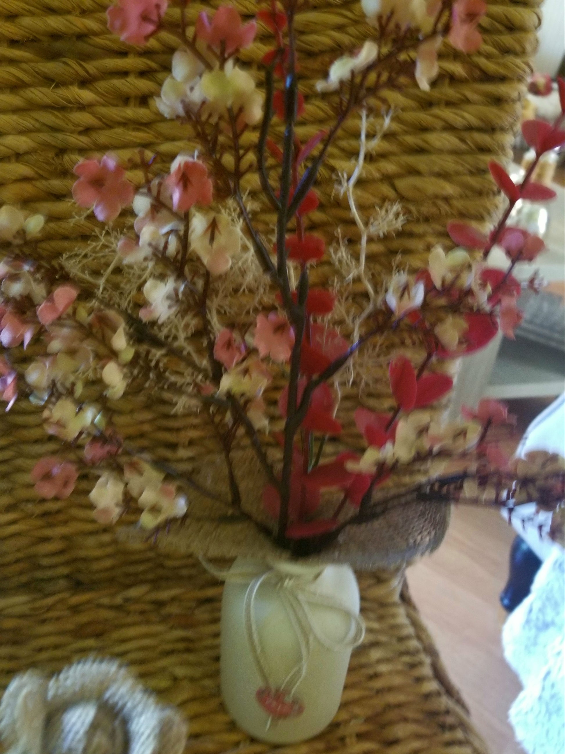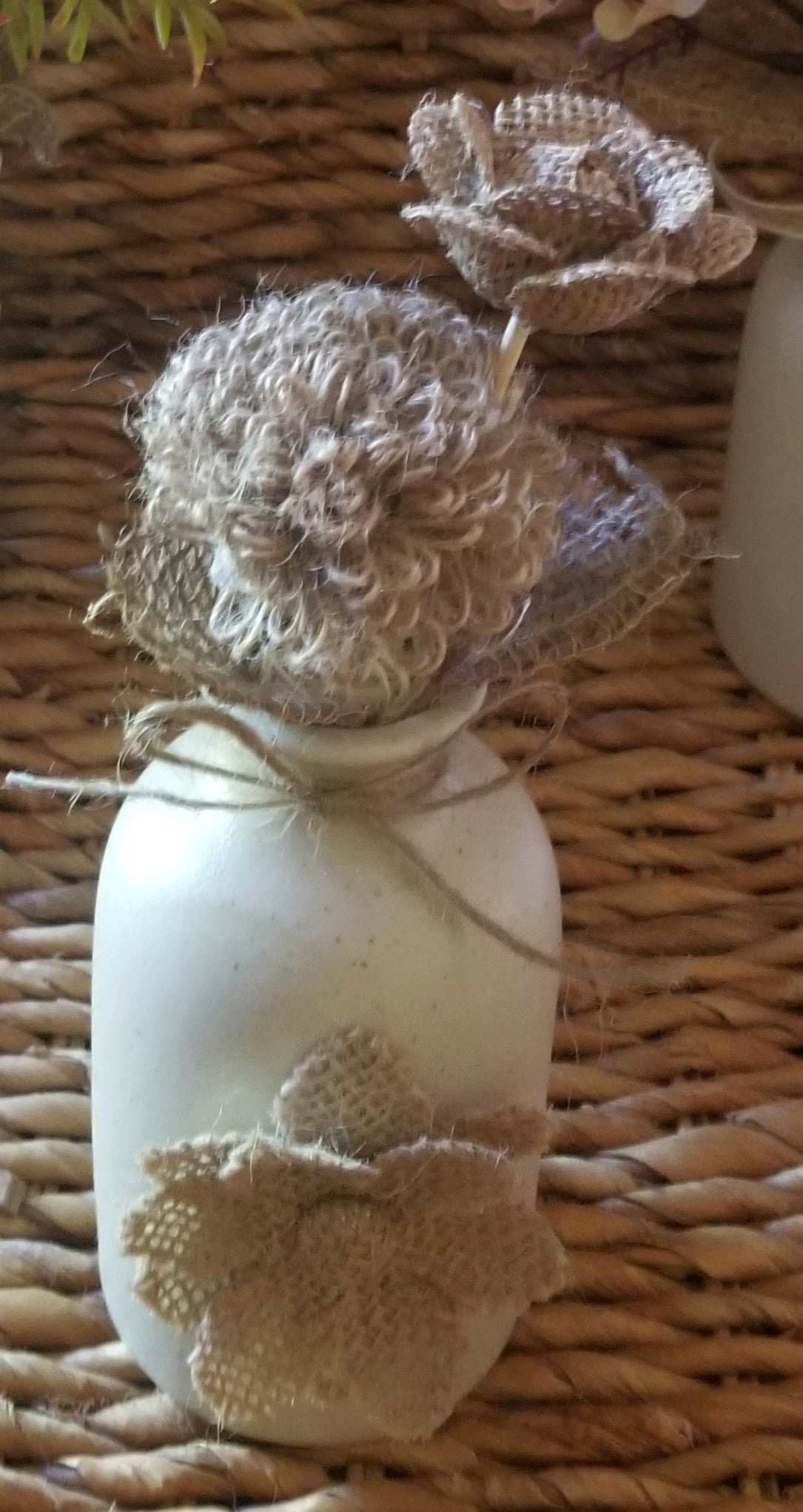 deco#bouteillegres#fleurs#rubantoiledejute#fleurstoiledejute