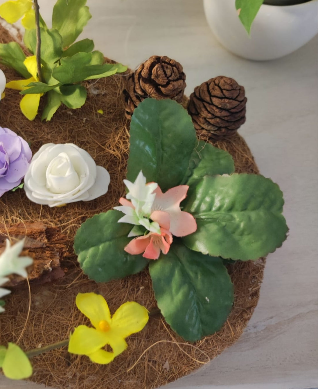 deco#plateaubois#printemps#fibredecoco#fleurs#pommedepin#boisdepin