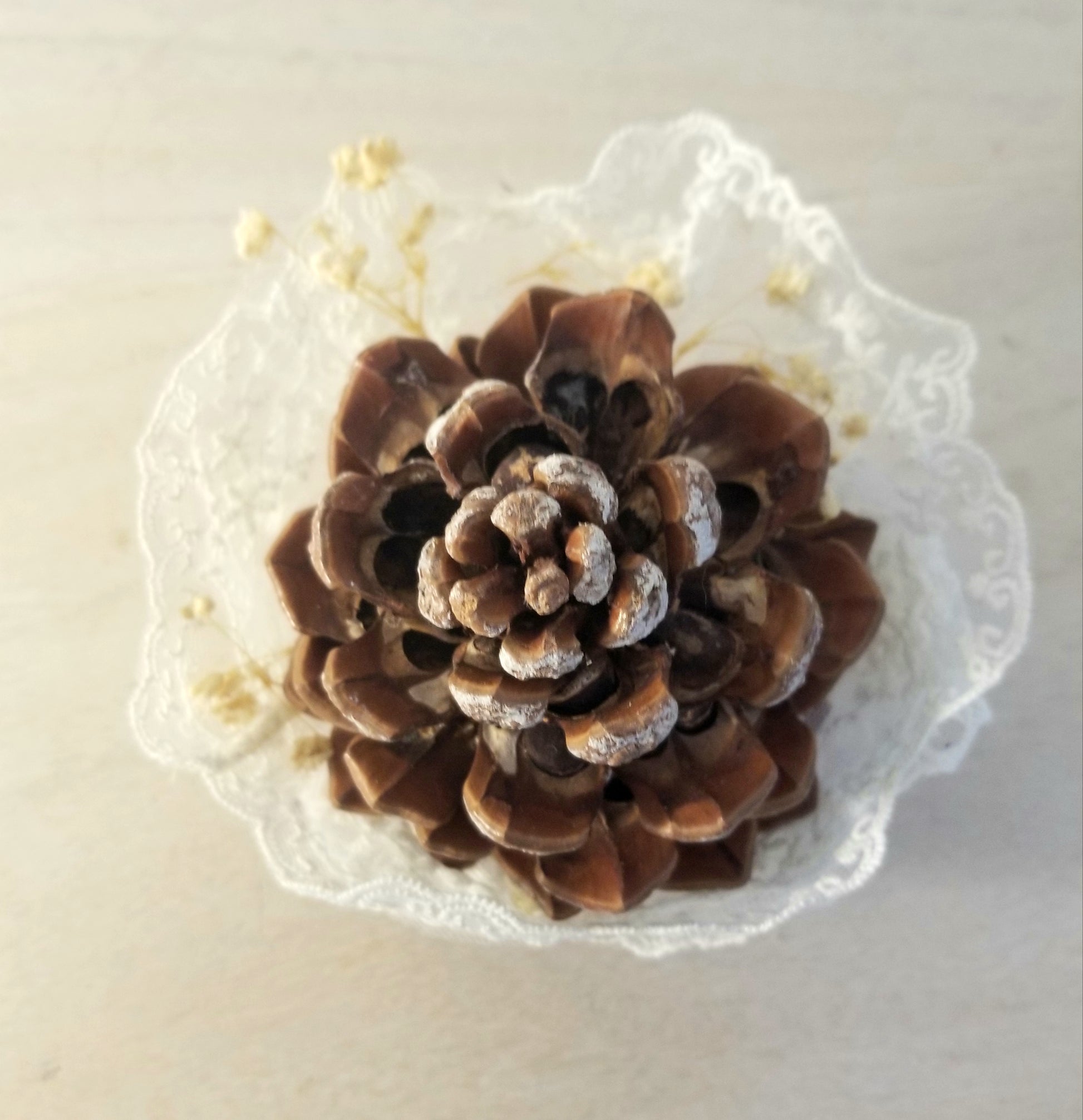 Pomme de Pin Décorée Dentelle et Gypsophile