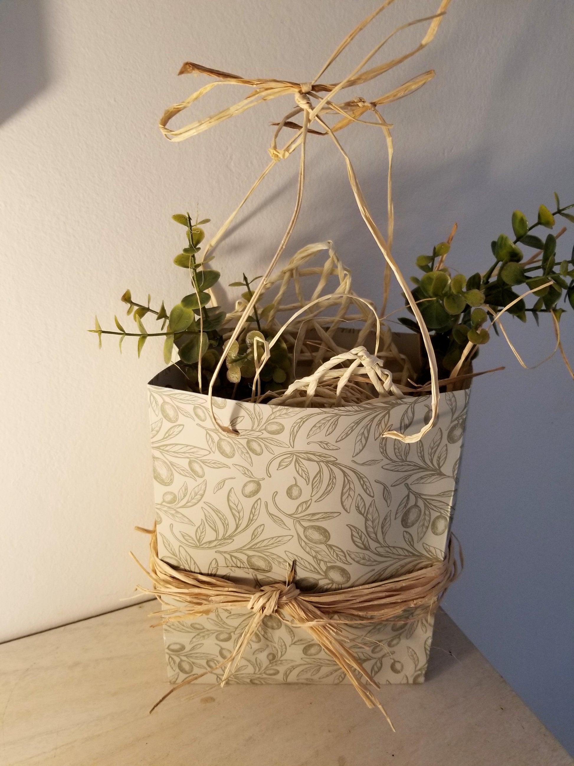 Sac, Carton Décoré, Macrame, Rafia, Verdure