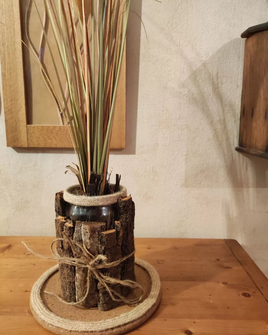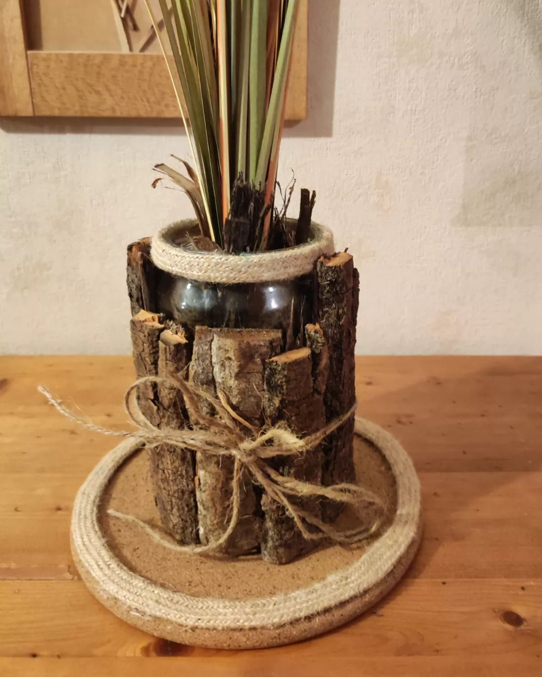 deco#vase#tapis#verre#bois#liege#cordon#fleurs